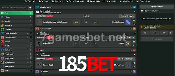 O 185bet oferece uma grande seleção de opções de apostas em e-sports com probabilidades competitivas